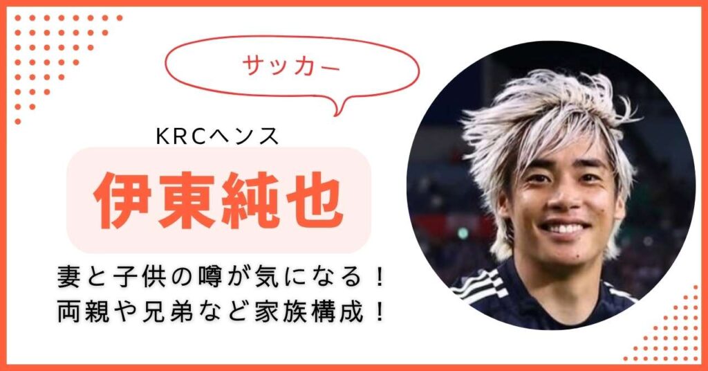 ベルギー1部リーグのKRCヘンクでプレーし、日本代表でも活躍するスピードスター・伊東純也選手。 圧倒的な突破力でファンを魅了する一方で、私生活については「ミステリアス」な印象を持つ方も多いのではないでしょうか。 検索ワードでも「嫁」「子供」「... -