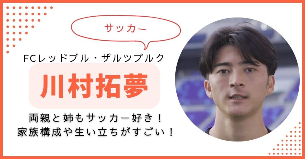 レッドブル・ザルツブルクでプレーし、日本代表歴も持つ川村拓夢選手。 広島育ちのボランチとして注目を集める一方で、「実家はどこ?」「家族構成は?」「兄弟はいるの?」といったプライベート面にも関心が高まっています。 本記事では、過去のインタ... -