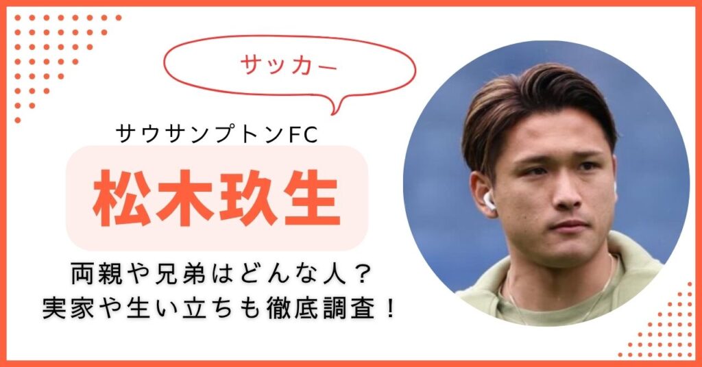 サウサンプトンに所属し、将来の日本代表の主力候補としても注目を集めている松木玖生選手。 強いメンタリティーと球際の激しさ、そして得点にも絡める万能型MFとして高く評価されています。 そんな松木玖生選手について、「家族構成は?」「父親や母親は... -