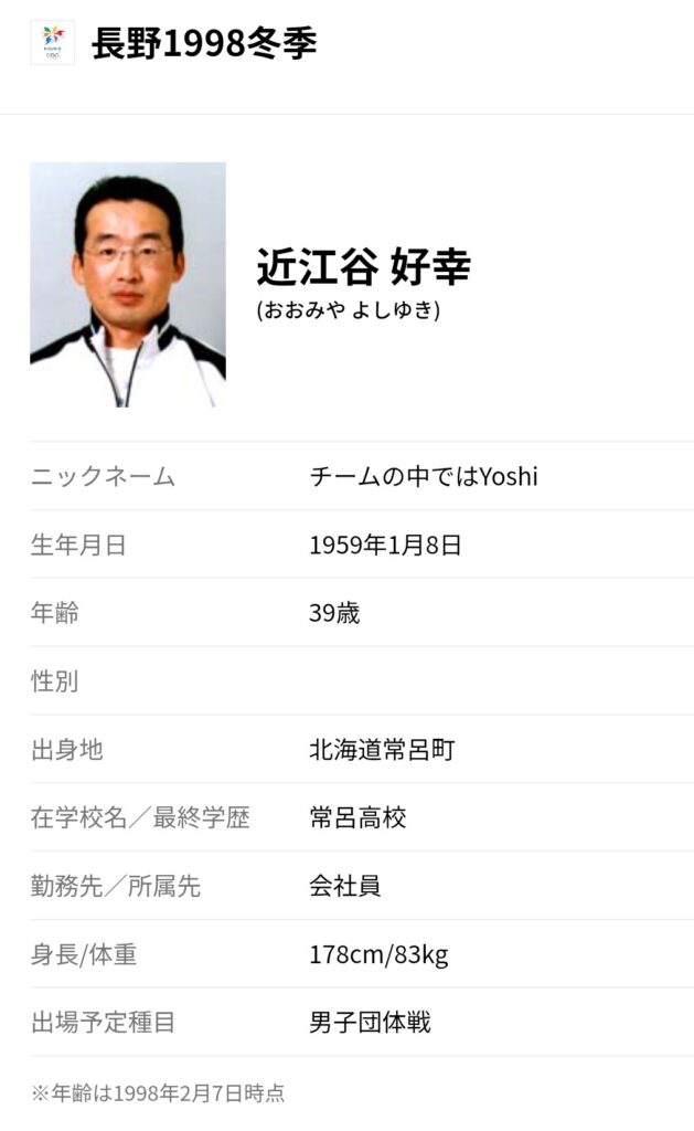 近江谷好幸さんは、1998年長野オリンピックで日本男子カーリングチームのメンバーとして出場し、5位という好成績を残しました。